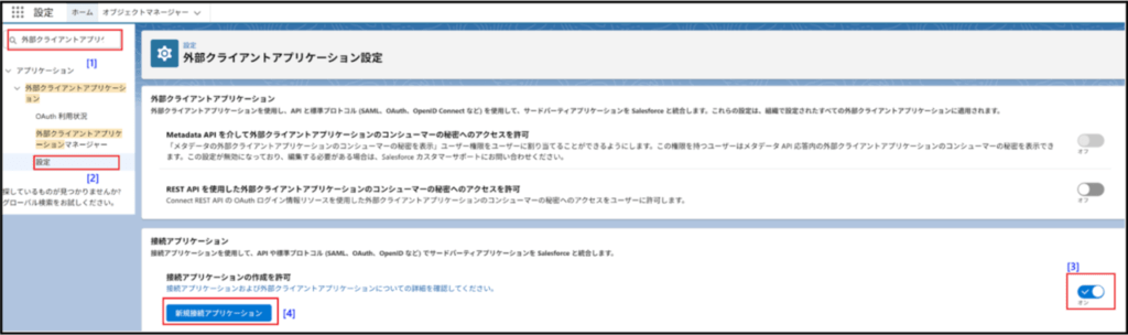 [3] 接続アプリケーションの作成を許可 を「ON」に変更