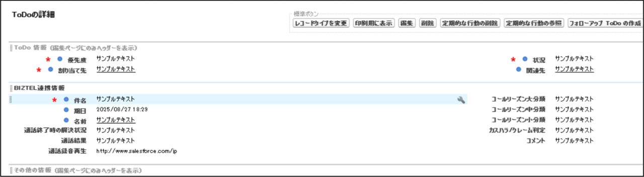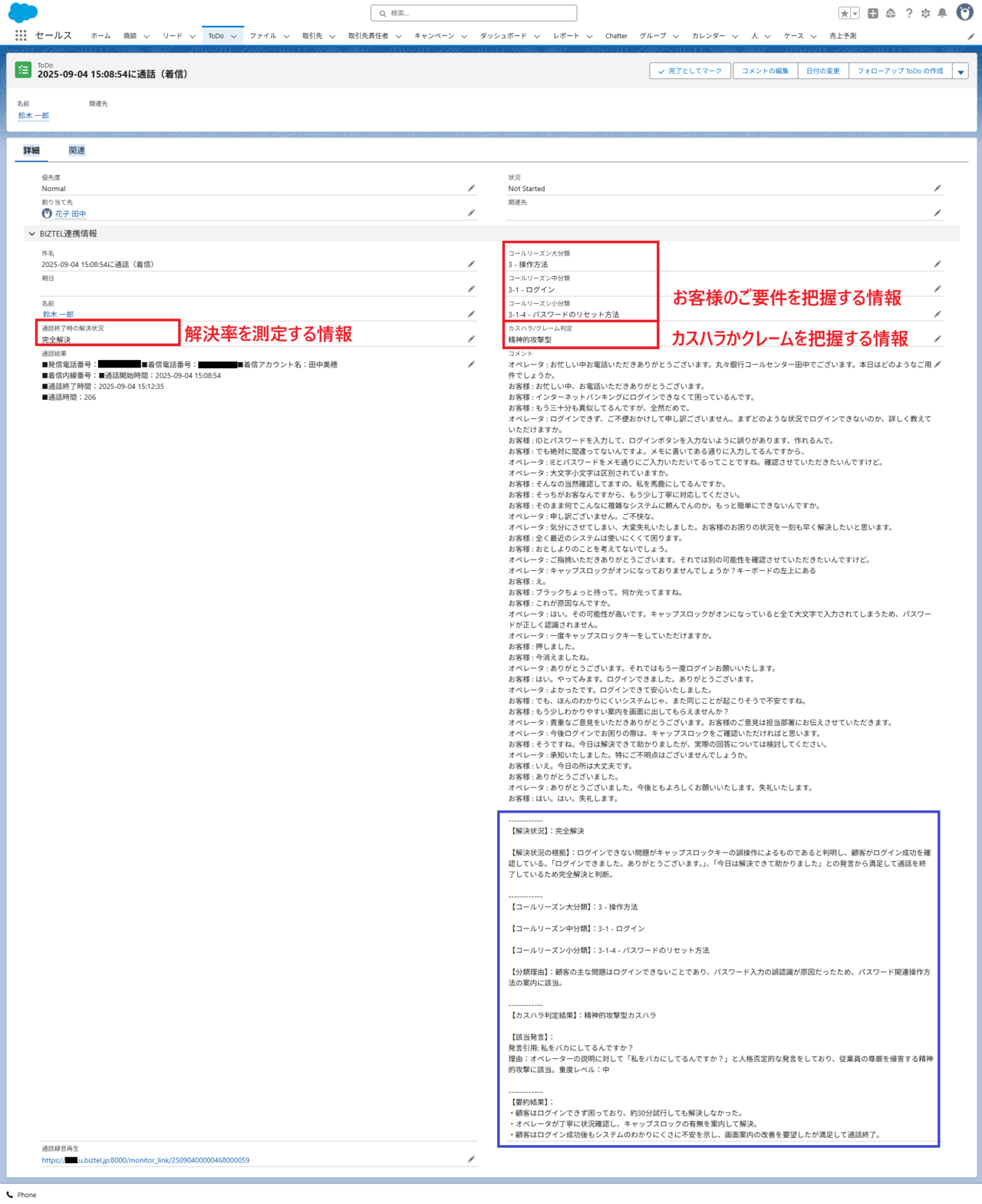Salesforceに通話内容を連携した結果、このようになりました。