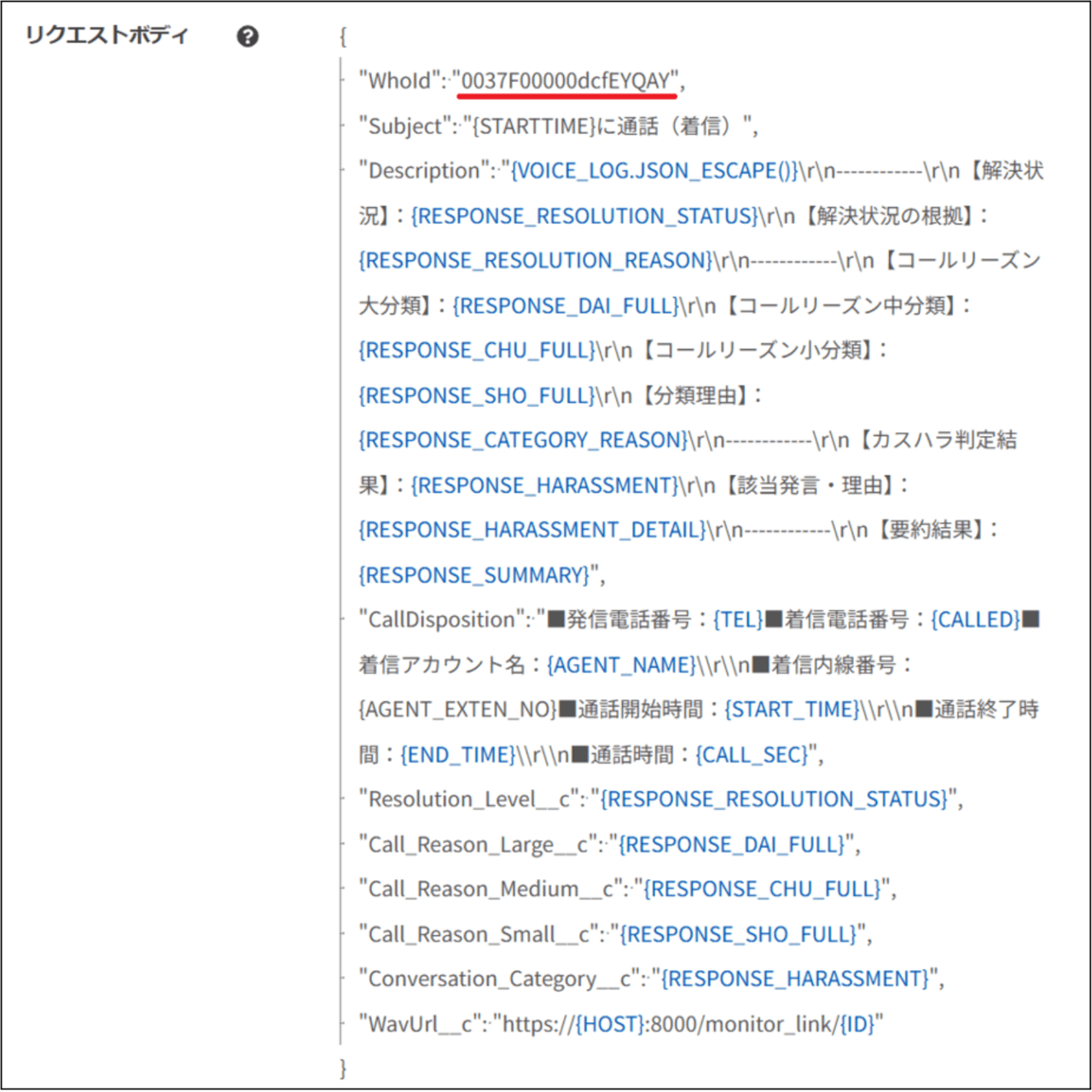 通話内容の要約結果やコールリーズン分類の結果を、Salesforceに記録するコールアクションの設定を「コールアクションテンプレート機能」を利用して行います。