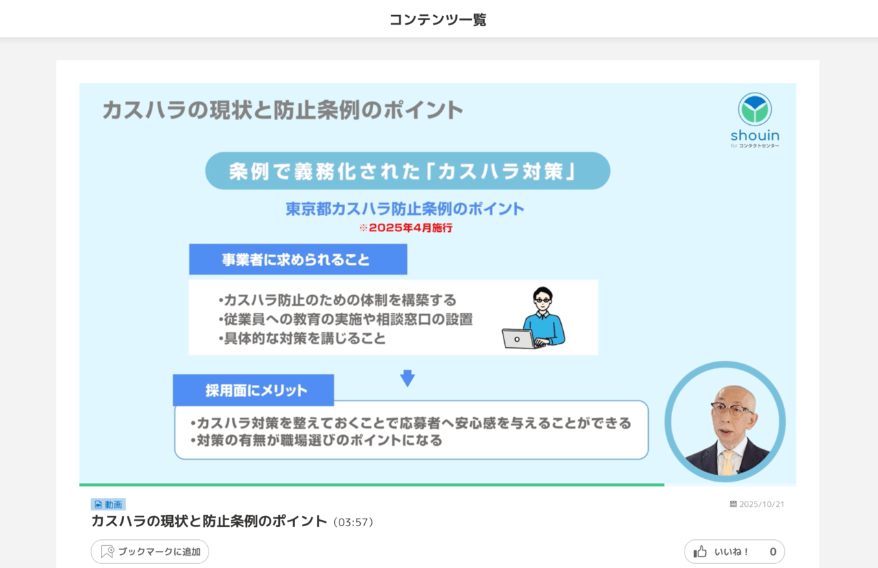 この記事では、新たにリリースしたプリセット研修動画『コンタクトセンターにおけるカスハラ対策と体制構築』についてご紹介します。