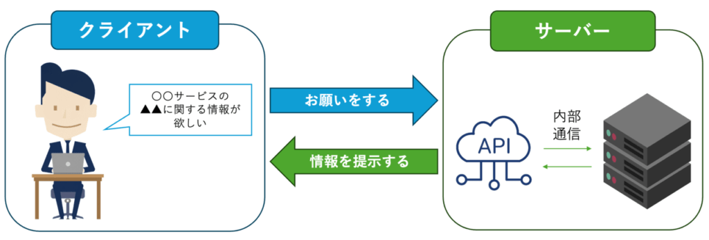 - クライアント(API利用者)が「○○サービスの▲▲に関する情報が欲しい」とお願いします。