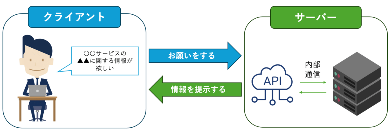 - サーバー(API提供者)がそのお願いを受け取り、内部で必要な処理を行います。