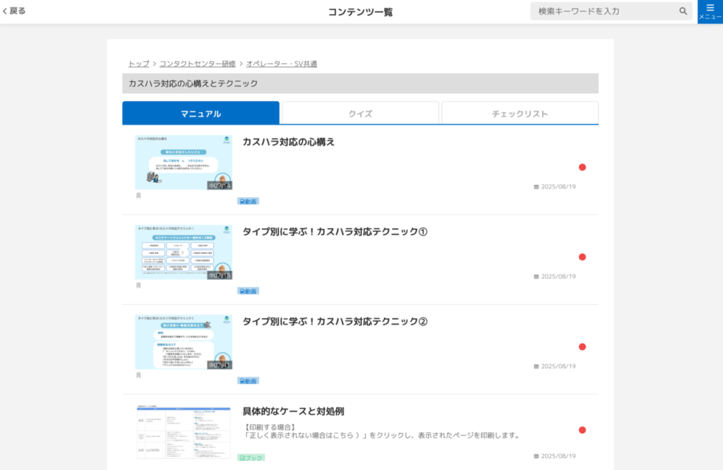 毎月新作動画が追加されるため、既存のコースに追加したり、新規でコースを作成したりして活用しています。直近ではカスハラ対応のコンテンツが追加されたので、今後の研修に役立てたいと考えています。