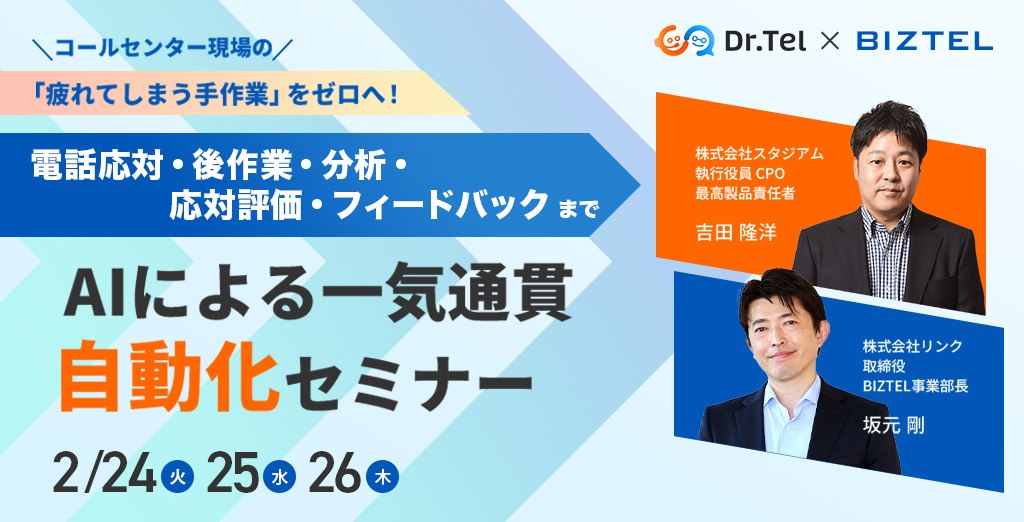 - 評価業務の自動化で応対品質向上を実現するAIツール『 Dr.Tel 』を提供する 株式会社スタジアム