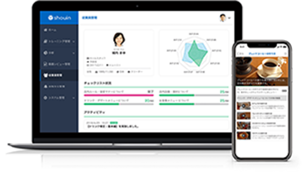 パソコンやスマートフォンを通じて動画による研修を実現。教育状況の可視化や一元管理も可能です。教育にかかる時間と手間を圧縮しながら、教育レベルのアップも目指せる新しい教育管理システムです。